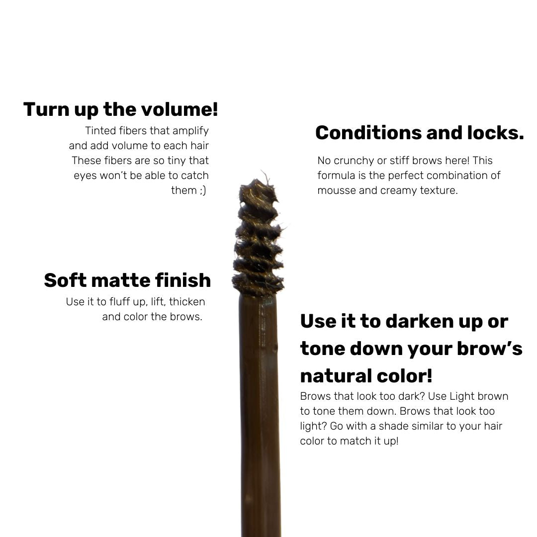 Helps you go from bare to bold in seconds! This buttery formula contains tiny fibers that amplifies, fluffs, tint, and lifts the hair!